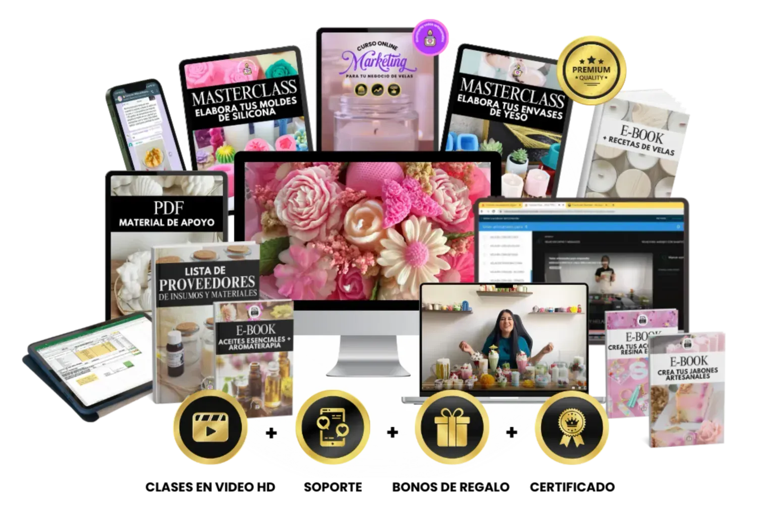 Descubre el contenido completo que te llevará de principiante a emprendedora de velas artesanales.